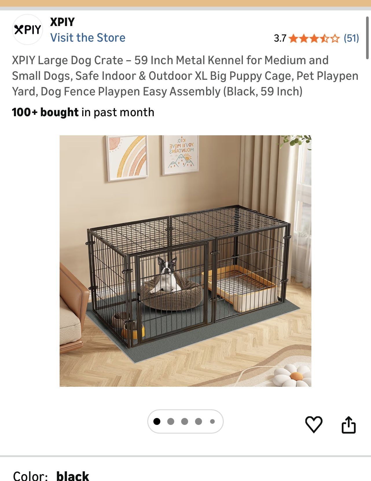 Brand new, never opened — still sealed in box. XPIY Large Dog Crate / Metal Kennel – 59 inch (Black). I bought it but it ended up being too big for my space, so I’m selling it and getting a different style. ✔️ Still in original packaging ✔️ Never assembled / never used ✔️ Great for medium & small dogs ✔️ Indoor/outdoor playpen style Cash only