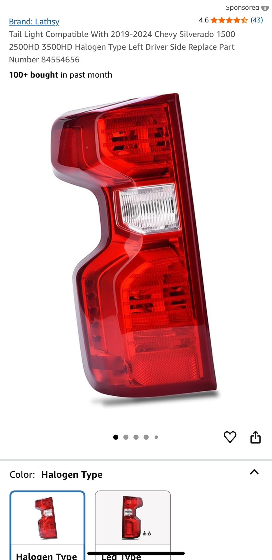 Tail light compatible with 2019-2024 chevy silverado 1(contact info removed)hd 3500hd halogen type left driver side