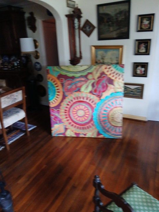 Excellent condition just right for an office or Den. Has the original price tag on the back 350.00 from Pier One. The print is 4 feet by 4 feet. Definitely a statement piece to enjoy for years to cum.