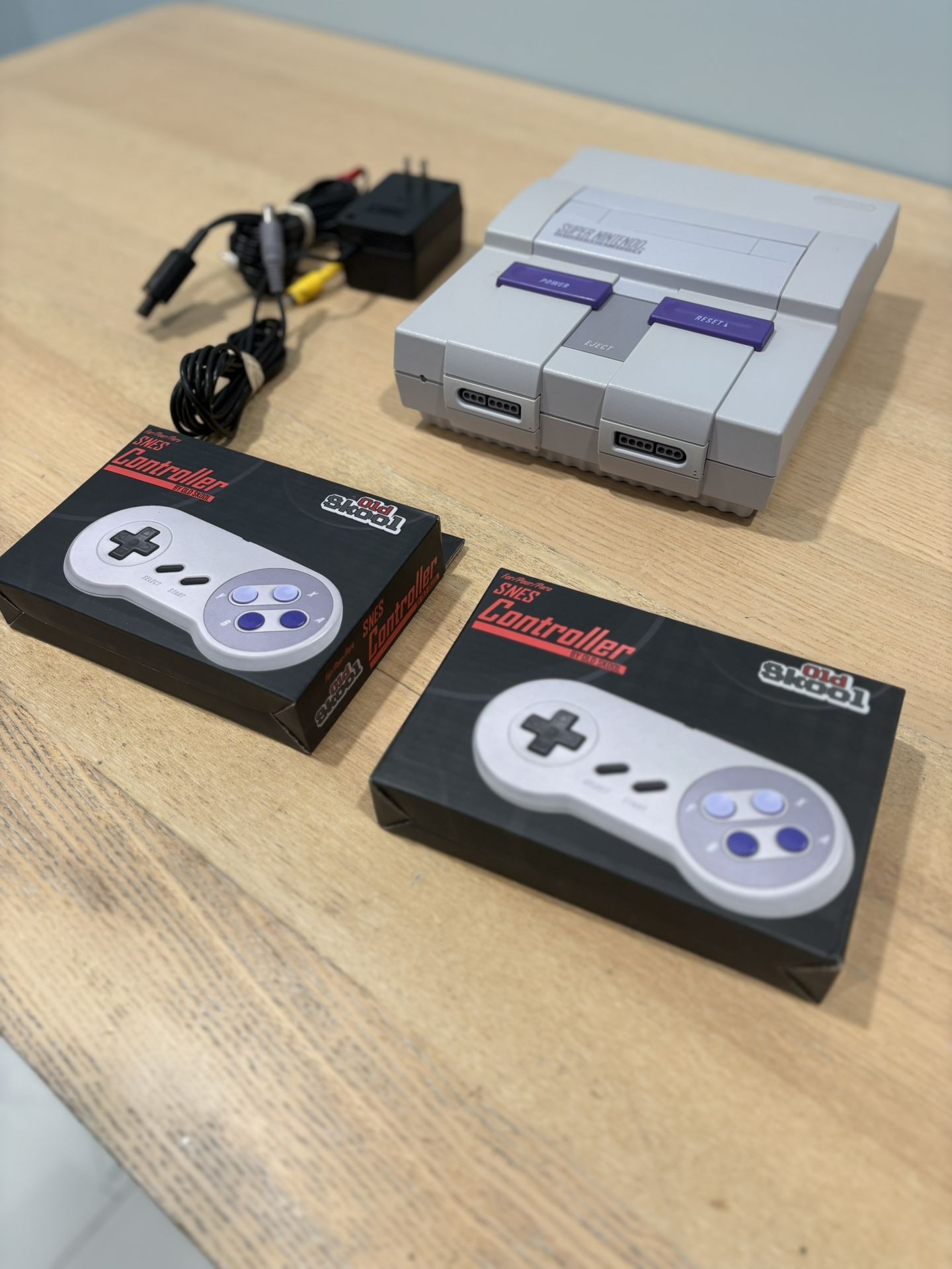 Super Nintendo with Controllers and Cables