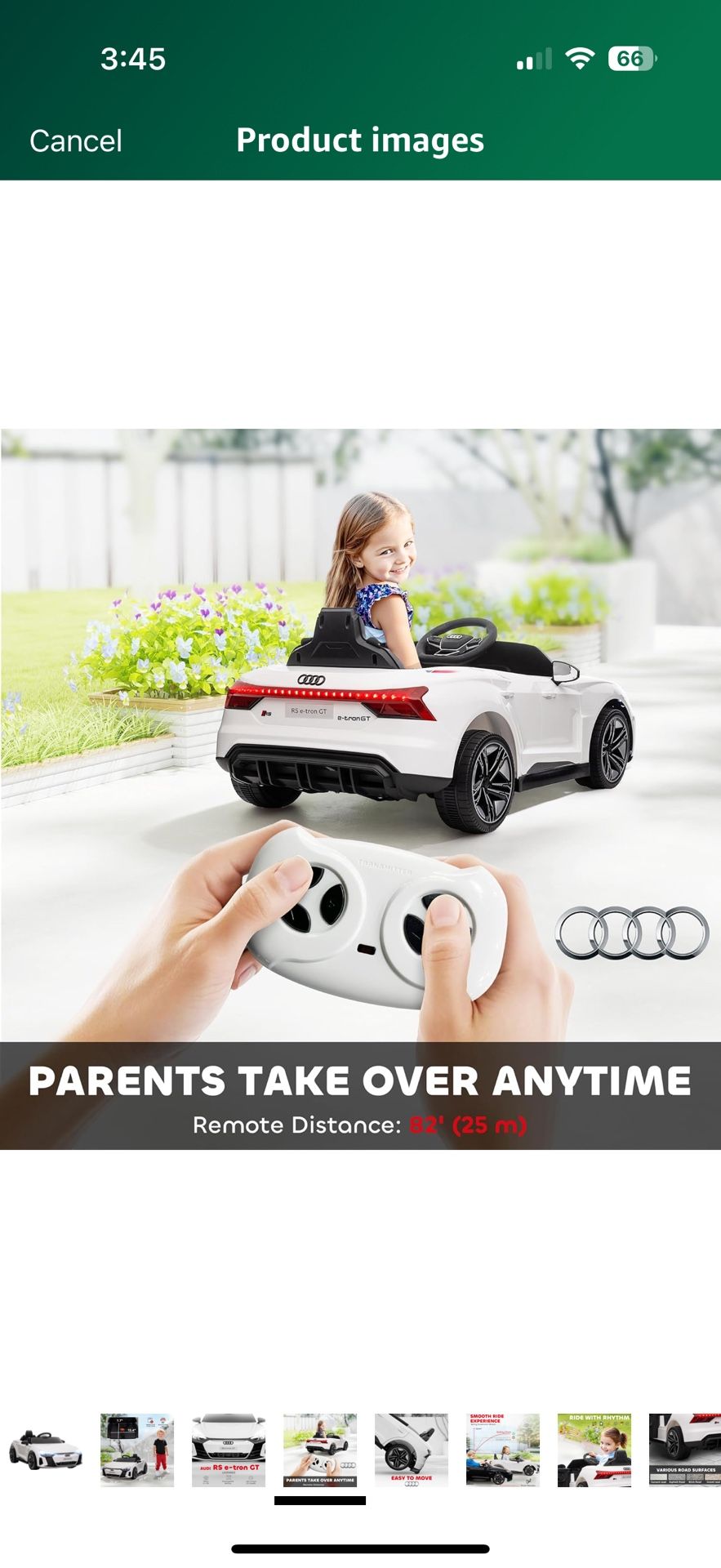 Cute ride on car in Excellent condition. Got a bigger one for my kid. $60. Aosom Licensed Audi RS e-tron GT 12V Ride On Car Truck for Kids, Electric Car Ride On Vehicle w/Parent Remote Control, Music, Lights, for Toddlers, White
