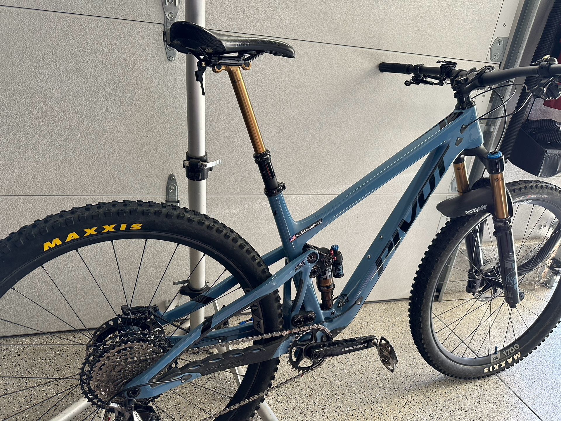 Large Incredible bike—enduro version comes with beefier Fox 36 GRIP2 140mm fork and factory float X rear shock.