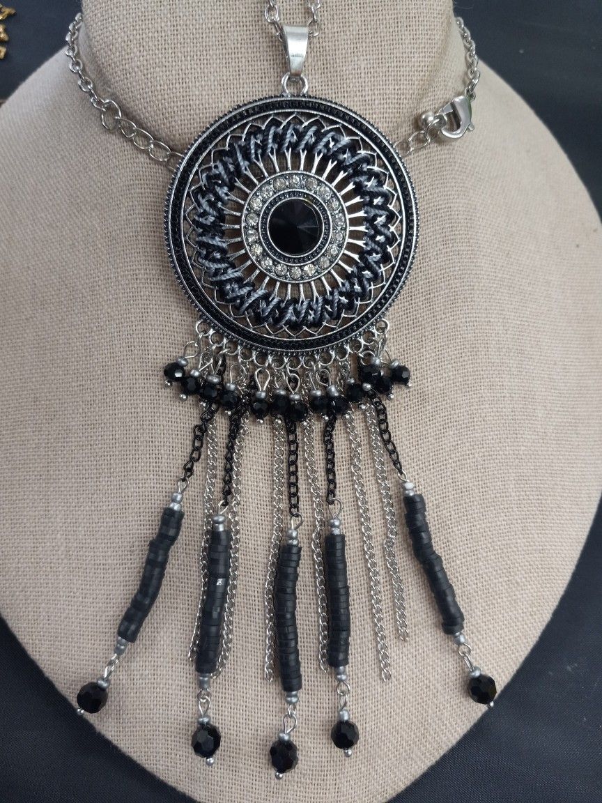 beautiful necklaces in silver and antique gold metal with chains pendant decorated with crystal. hermosos collares en metal silver y oro antiguo con cadenas colgante decorado con crystal