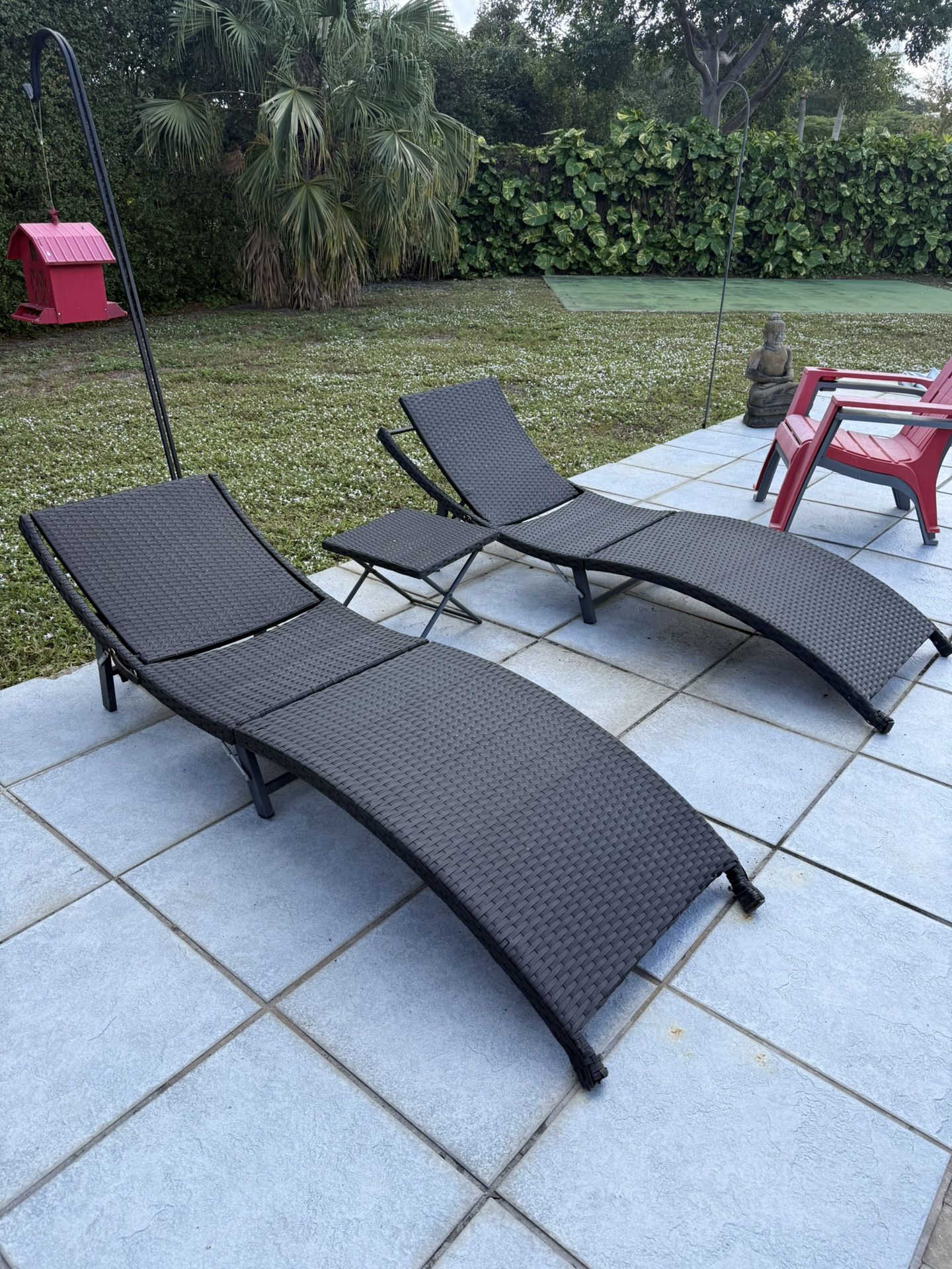 Pool lounge chairs and table in fair condition. $75 OBO