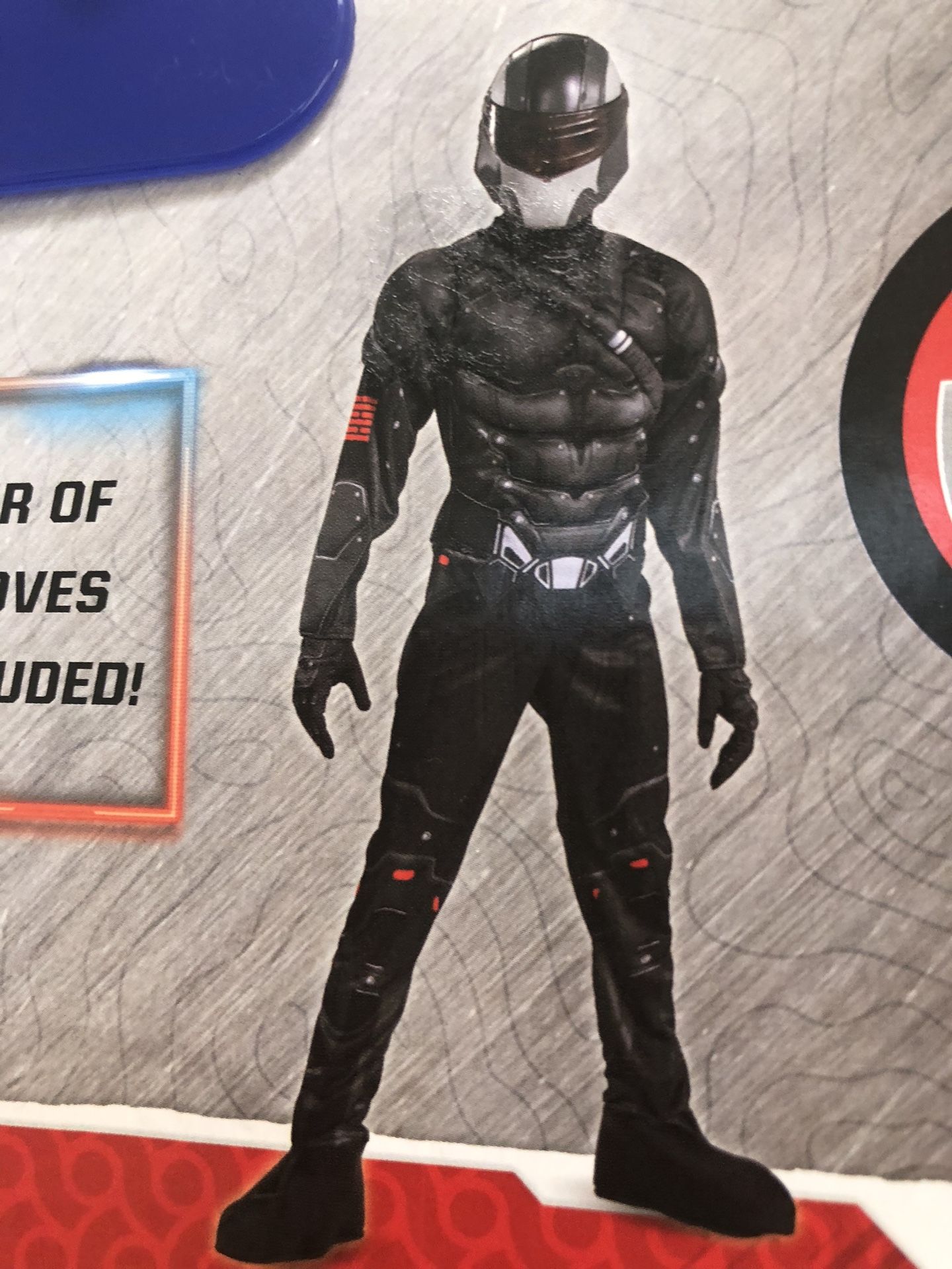 Jumpsuit with muscle torso and arms, attached shoe covers, mask and pair of gloves