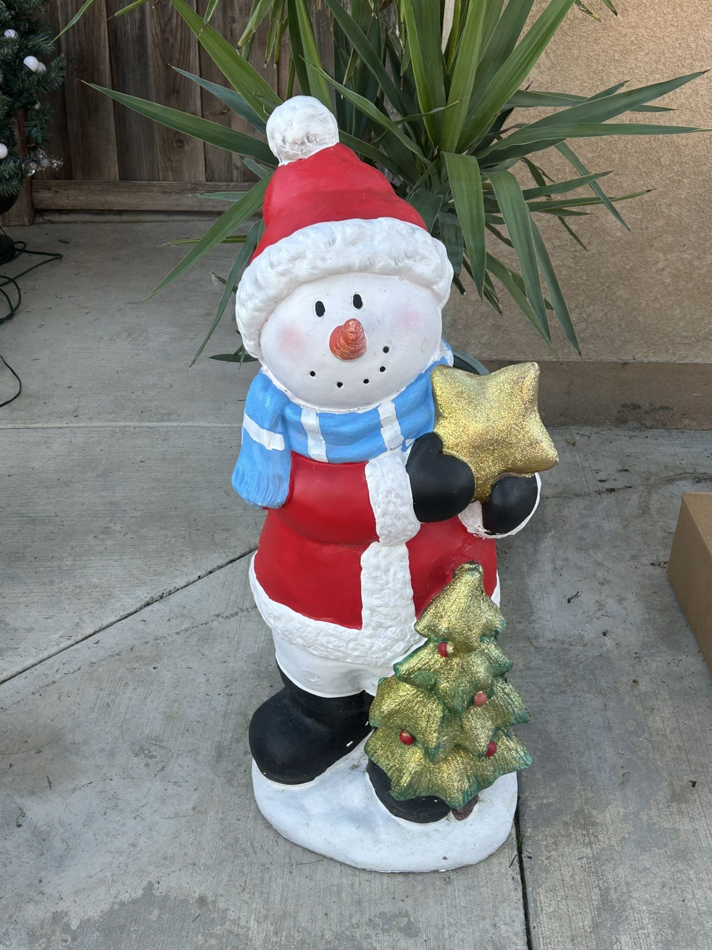 If this post is visible then item is available Cash at meetup New condition 3 feet tall plaster Christmas snowman sculpture Heavy and sturdy to resist outdoor elements like rain and wind Last one available all the rest are sold out