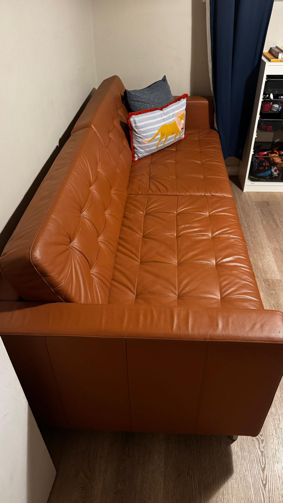 IKEA MORABO Leather Sofa – Like New . Beautiful cognac leather sofa in like new condition It has been kept stored and barely used due to limited space at home. ✔️ Real leather ✔️ Modern tufted design ✔️ Clean, no damage ✔️ From a smoke-free home 📍 Located in Sunnyvale 🚚 Delivery available