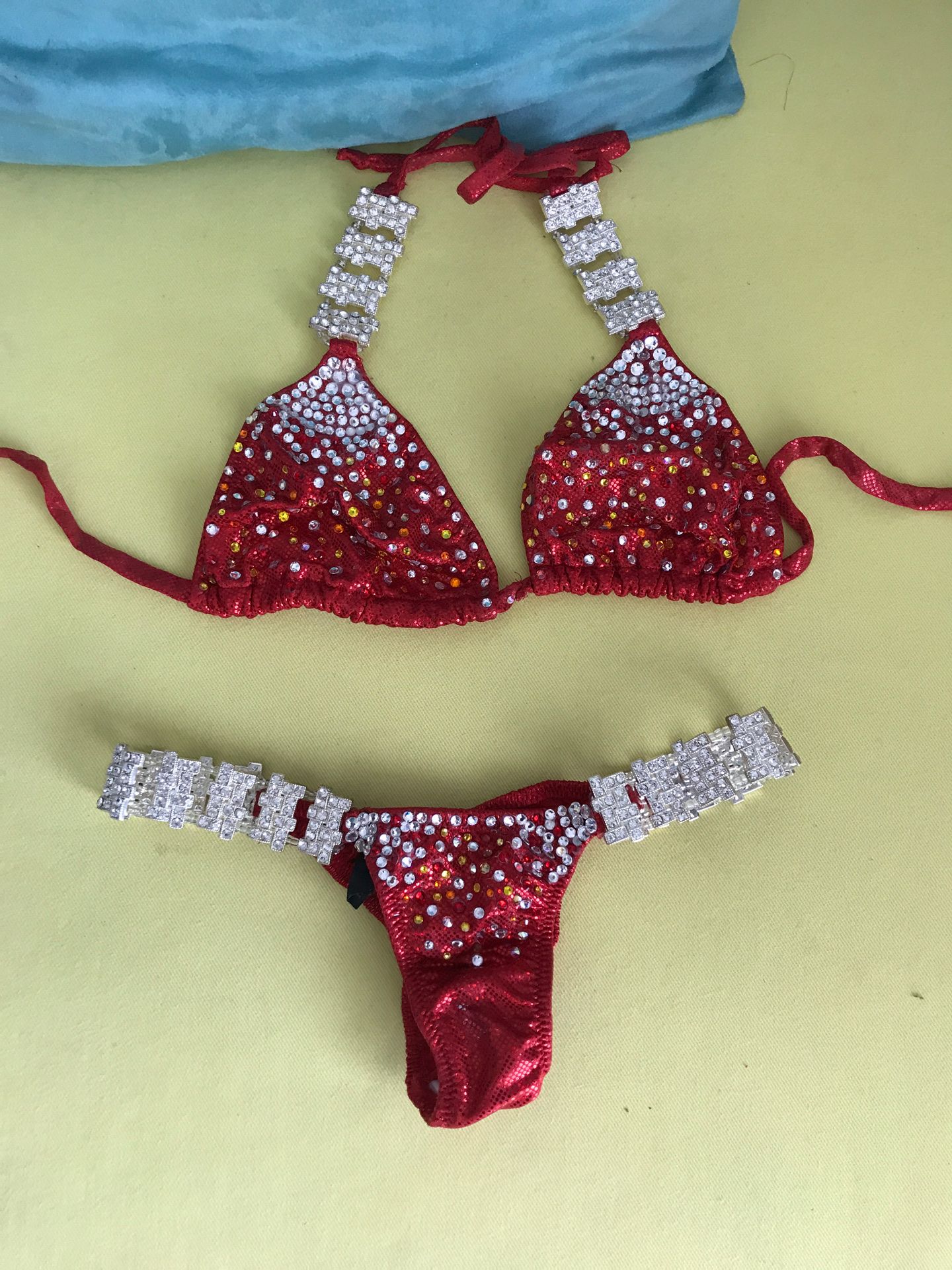 Swimwear, bañador , traje de baño para dama talla S . Color rojo con cristales . Un solo uso profesional ( competición de bikini )