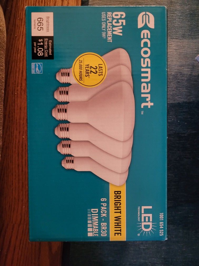 6 Pack of Ecosmart BR30 65W Light Bulbs - Bright White