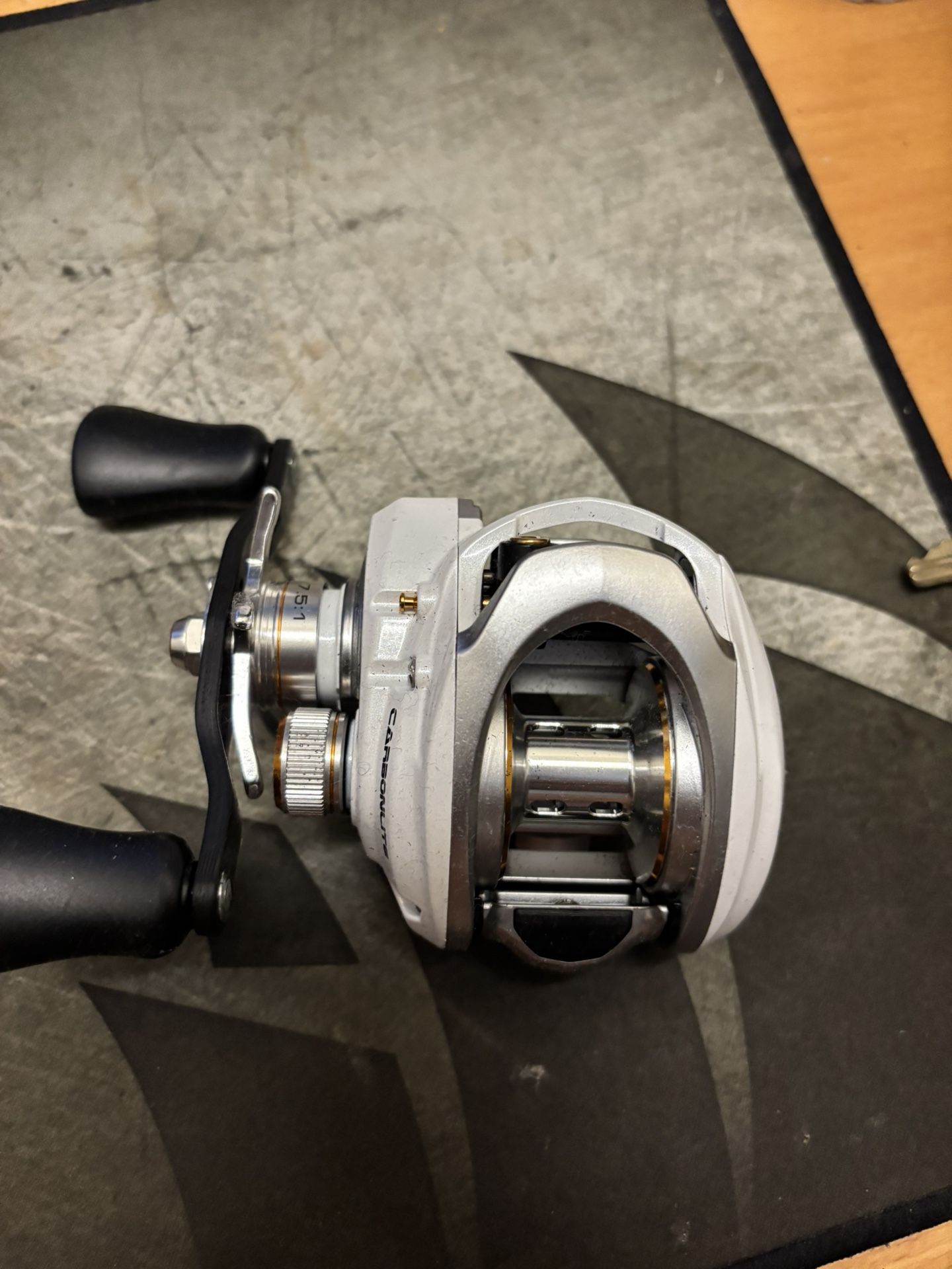 Shimano Slx hg150 - 70 Bass pro carbon lite - 80 Abu Garcia black max low profile spooled with 6 lb mono - 30 BRAND NEW