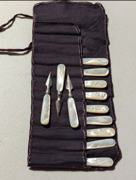12 mother of pearl silver drink cocktail bar charcuterie board skewers picks forks vintage Gatsby 1(contact info removed)s look for cocktail party or display