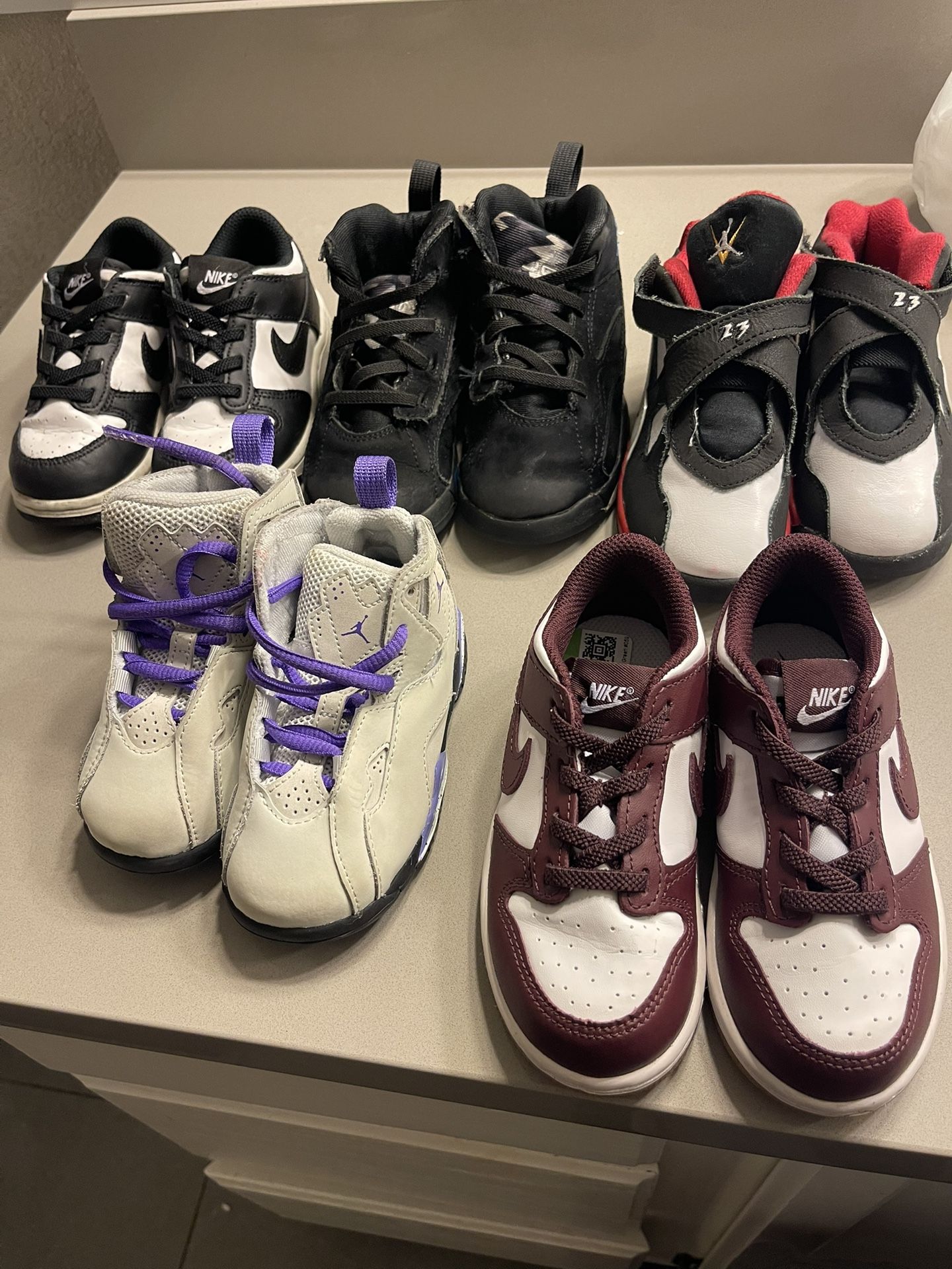 Lot of Nike/ Jordan toddler shoes Gray Jordan size 9c Dunks and black/red Jordan size 9c Black/blue Jordan size 10c