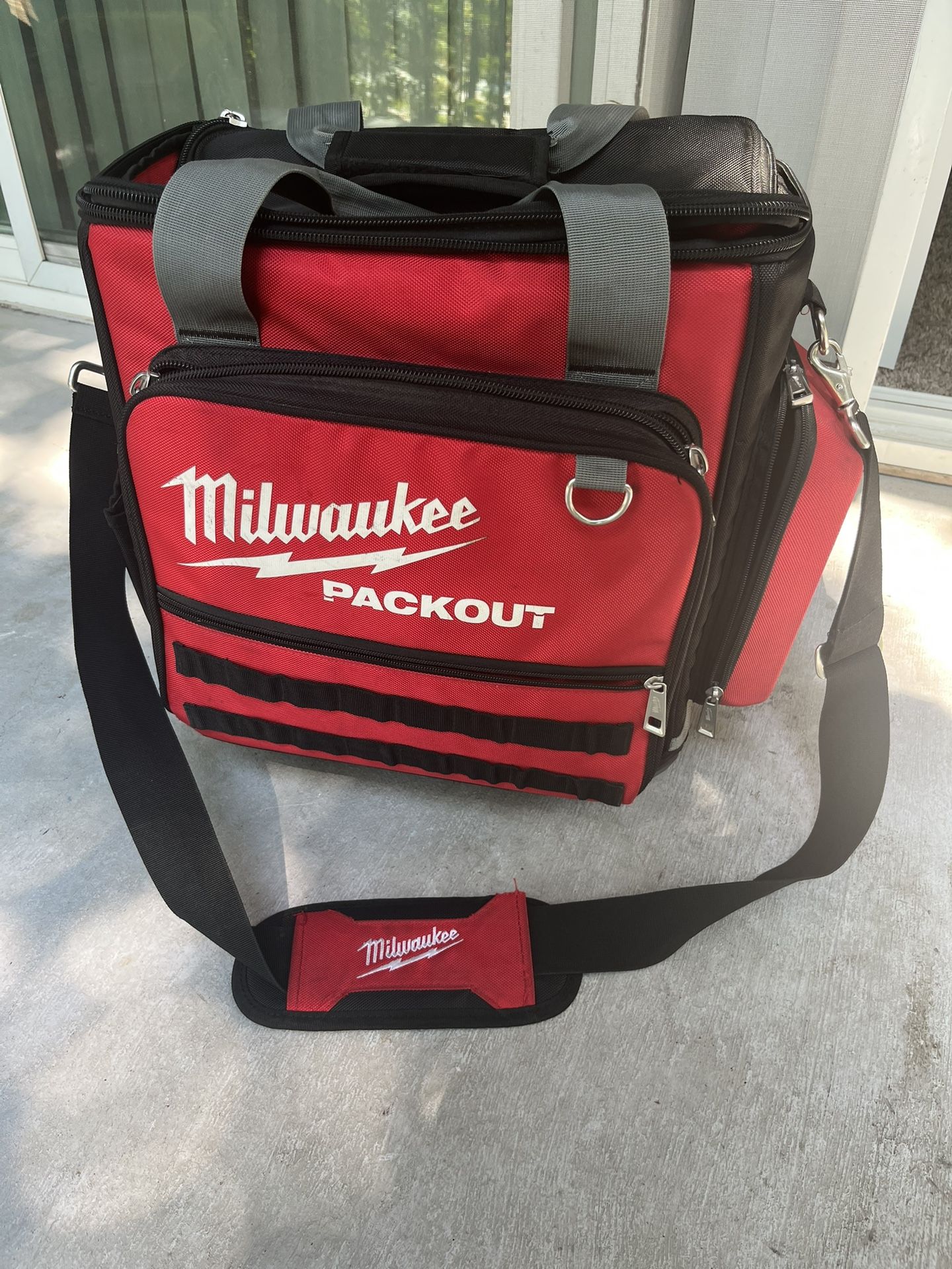 New Milwaukee packout tool bag (electrician Edition) it can be used for a variety of trades this is not a cheap or regular bag . Impact resistant heavy duty structural build with shoulder strap