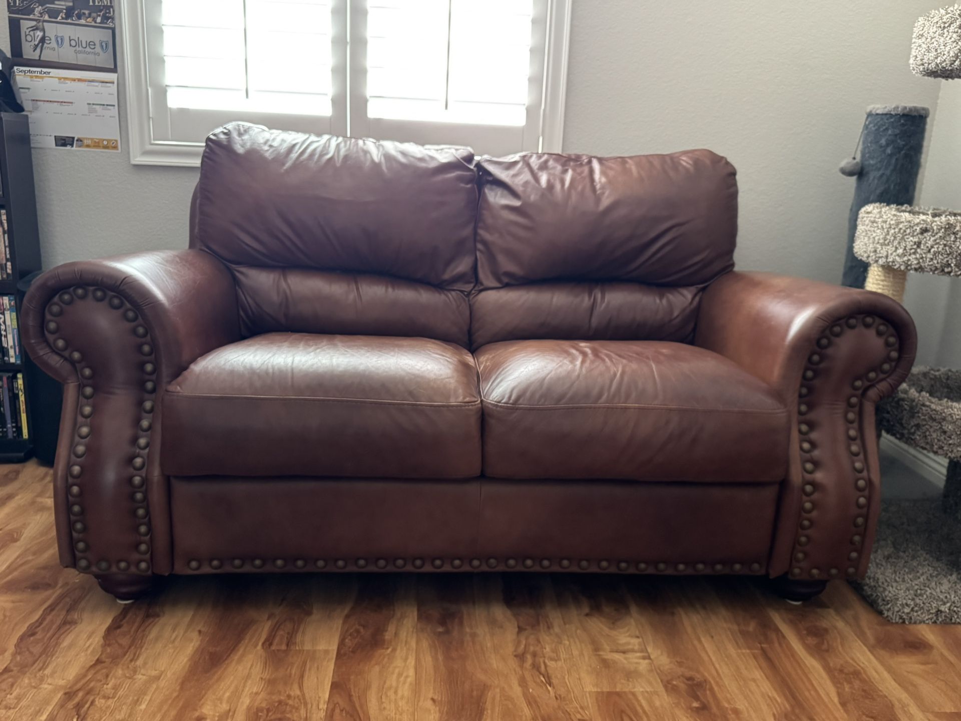 Leather loveseat & chair, rustic look normal wear no damage on them very clean paid over 2000