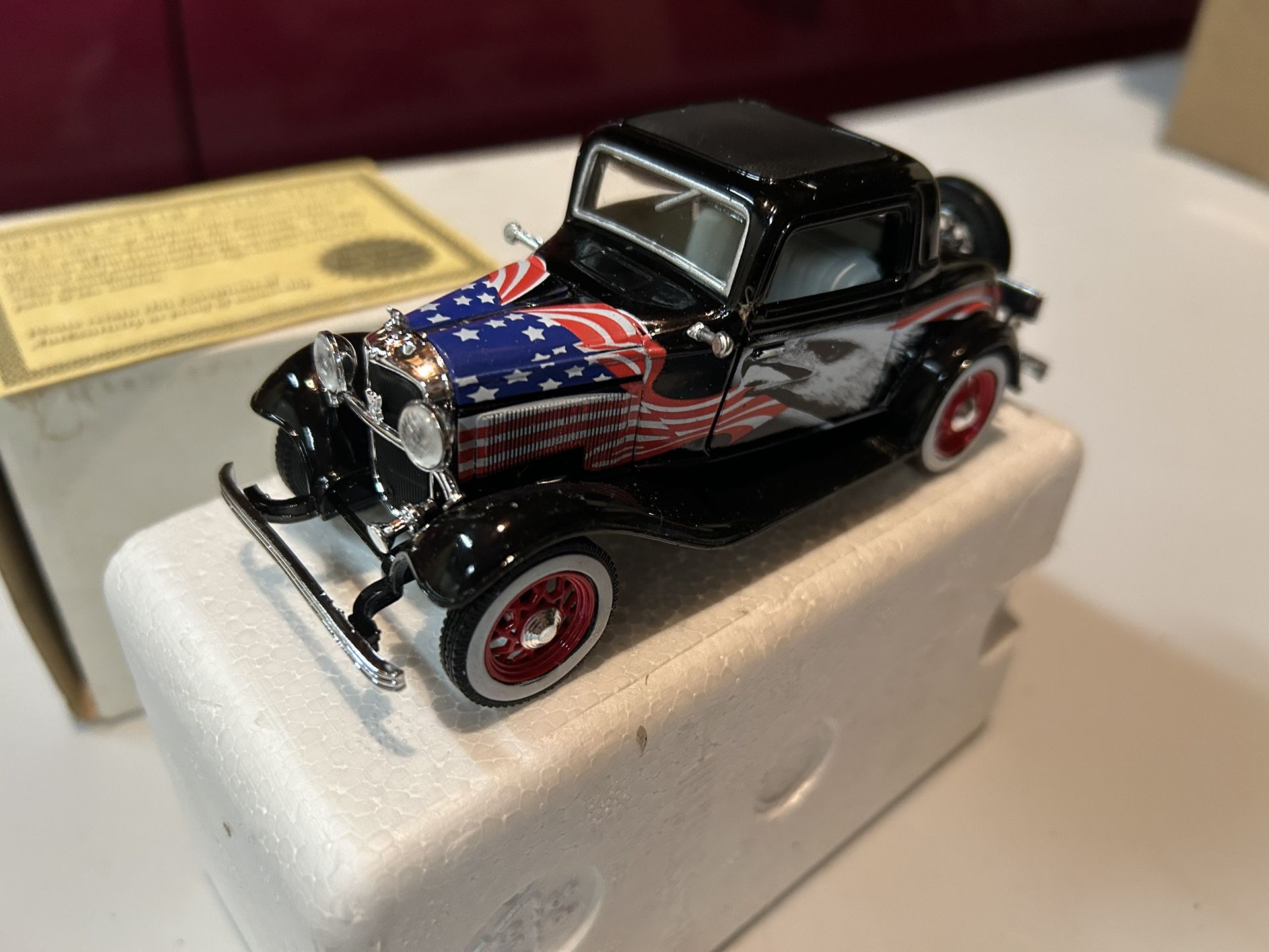 1932 Ford Coupe With Flag Model Car. Certificate of Authenticity included. Smoke free home.