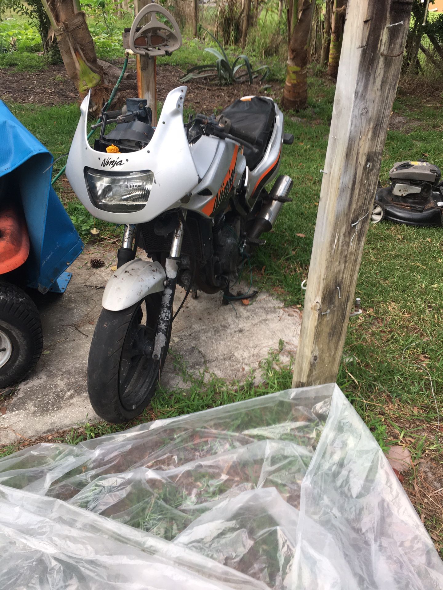 MakeKawasaki ModelEX500-D Year2004 TrimD Style/BodyMotorcycle Engine500CC Selling whole bike need it gone send offer engine is good has other good parts.. no title no keys.. willing to trade for non running ATV, Go kart, or asking $400.00 obo