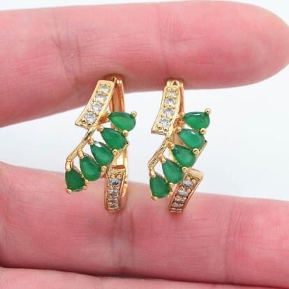 18k Gold Filled Earrings Hoops Dangles Hear Charm Green Women’s Jewelry Jewellery