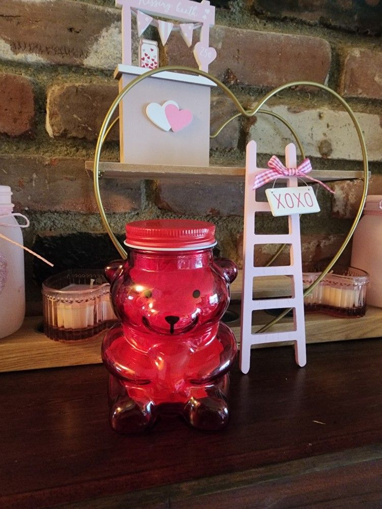 Dollar Tree Valentines Pink Red Glass Bears Jars