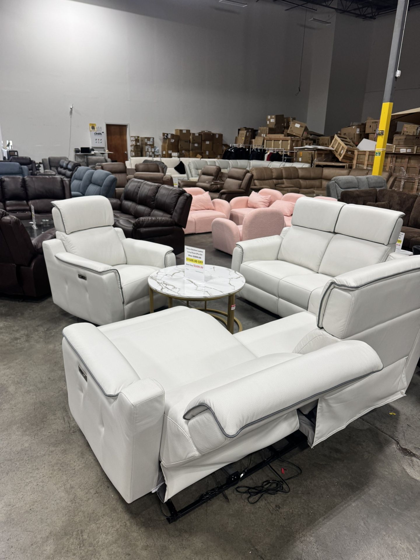Power Recliner Leather Living Room 3Pcs Sofa Set