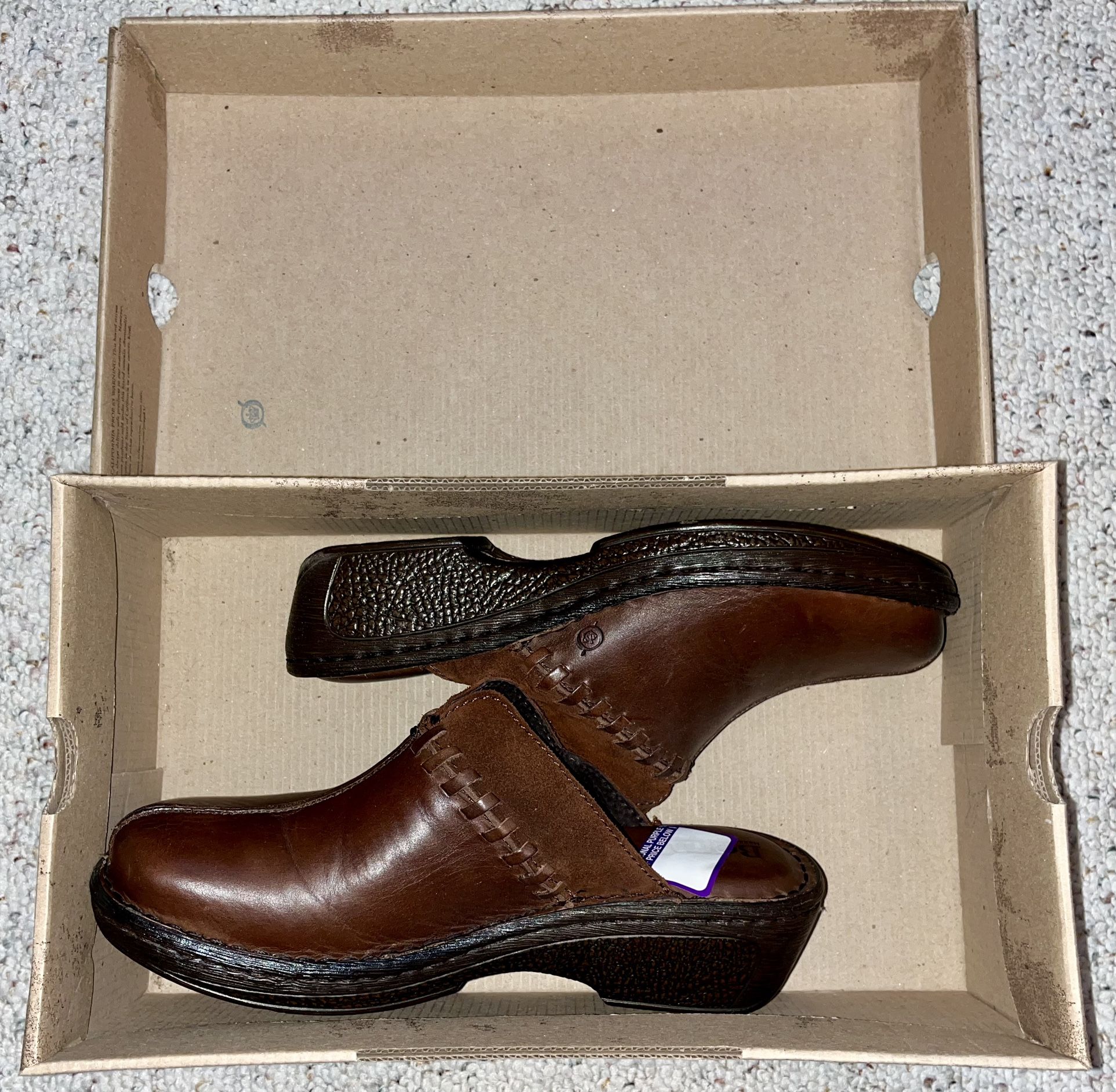 - Brand: Børn / Line: Ellendale - Gender: women - Size: 10 - Details: round-toe mule with 1.5 inch heel - Color: Cigaro (Børn’s brown) - Material: leather - NEW IN BOX / PERFECT CONDITION - From super-clean, non-smoking, pet-free home