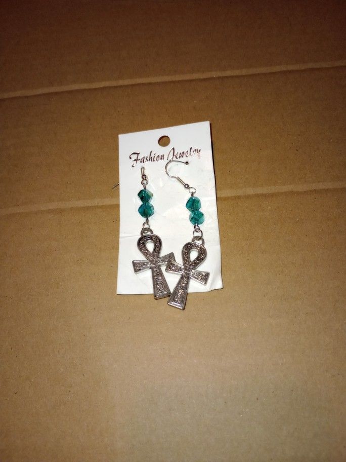 Anhk Earrings With Glass Beads
