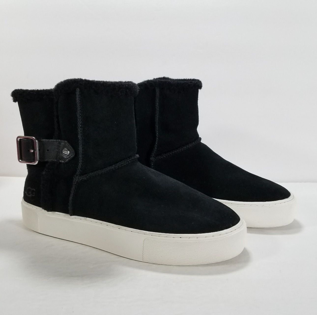 Brand: UGG Style: Aika Platform Sneaker Boots Color: Black Condition: In excellent pre-owned condition. See all photos for details and wear. Size: Women's 9 -Pull on or unlatch buckle style -Foam cushioned footbed -Suede leather upper -UGGpure wool lining -Rubber sole $80 Inventory 00260213BB2
