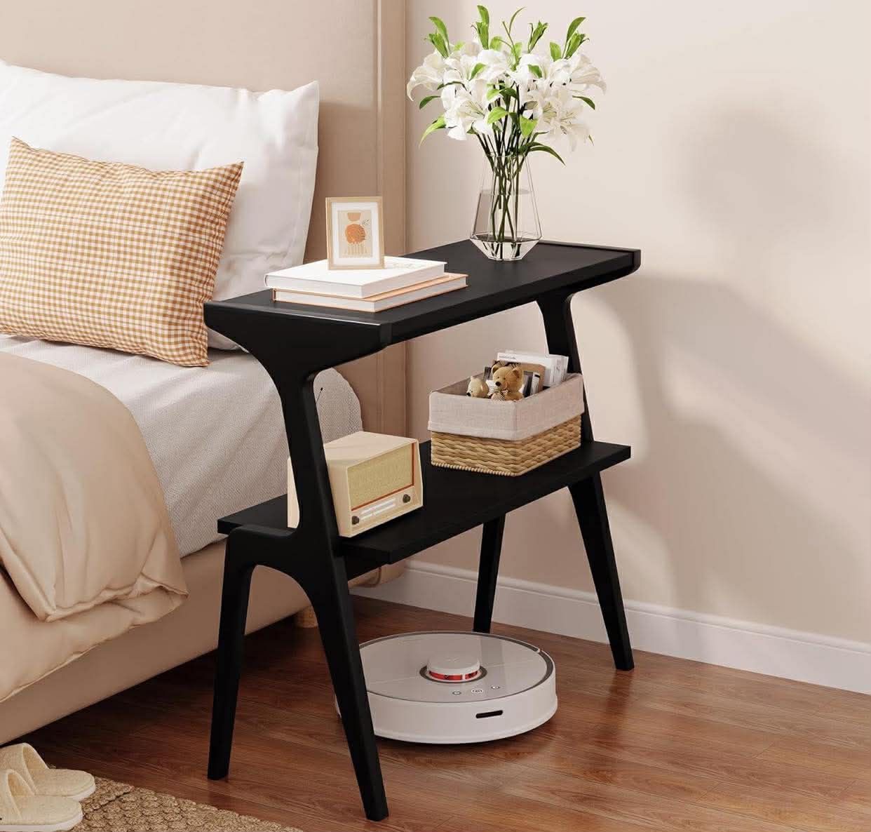 Solid Wood End Table, 2-Tier Side Table with Storage Shelf, Wooden Modern Accent Slim Bedside Table for Sofa, Living Room, Bedroom, Small Space, Easy
