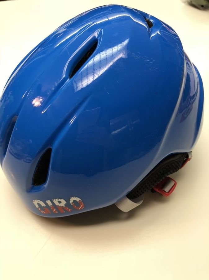 Giro youth helmet size small. Has small scuff on the top of helmet.