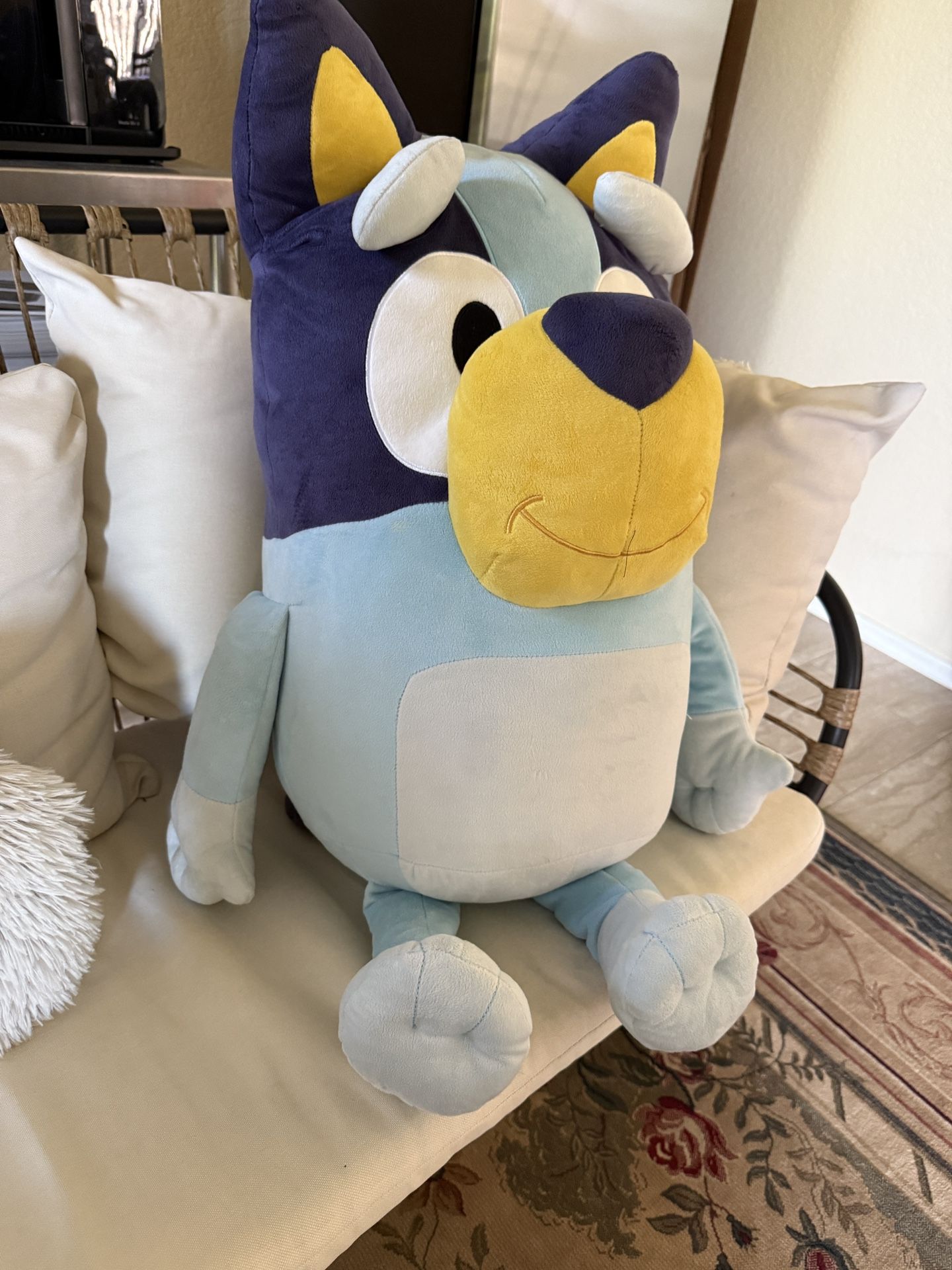 Extra-large Bluey plush – 32 inches tall! Soft fabrics with detailed embroidery, in like-new condition from a smoke-free home. Perfect for cuddles or display. Pickup Only: East Mesa – near Ellsworth & Baseline Rd