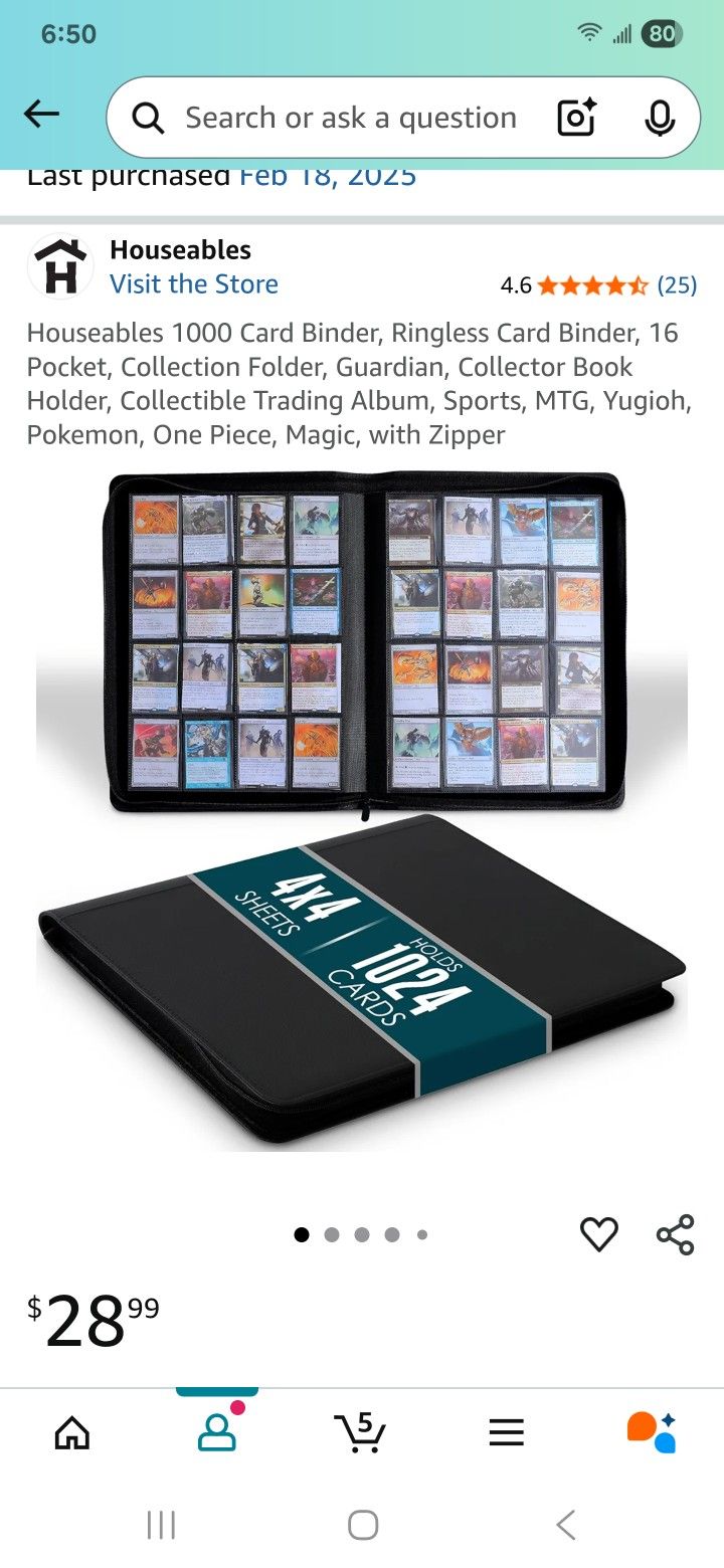 Brand new Amazon full details Houseables 1000 Card Binder, Ringless Card Binder, 16 Pocket, Collection Folder, Guardian, Collector Book Holder, Collectible Trading Album, Sports, MTG, Yugioh, Pokemon, One Piece, Magic, with Zipper