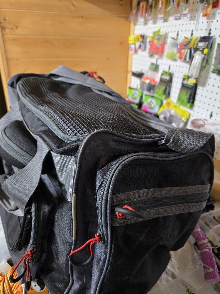 This Bag is big. Ugly stick. It can cary a lot of your tackle boxes. Or use it for travle lol. 20 bucks best deal out there