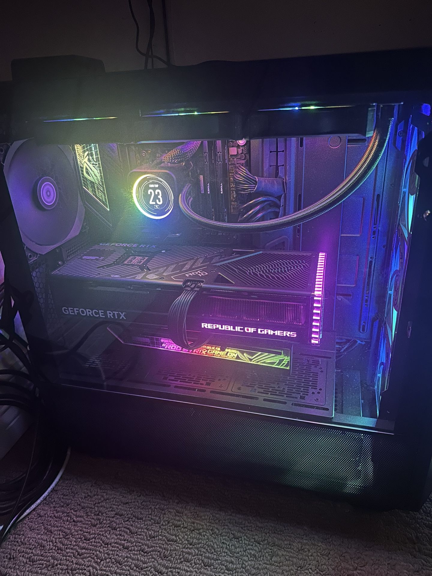 Will not part out or ship. Must pick up locally AMD Ryzen 9 7950x Asus ROG Strix 4090 OC Strix X670E-E motherboard 64GB DDR5-6000 trident Z H150i LCD liquid cooler Lancool III case 2TB NVME SSD Windows 11 pro Contact for more photos