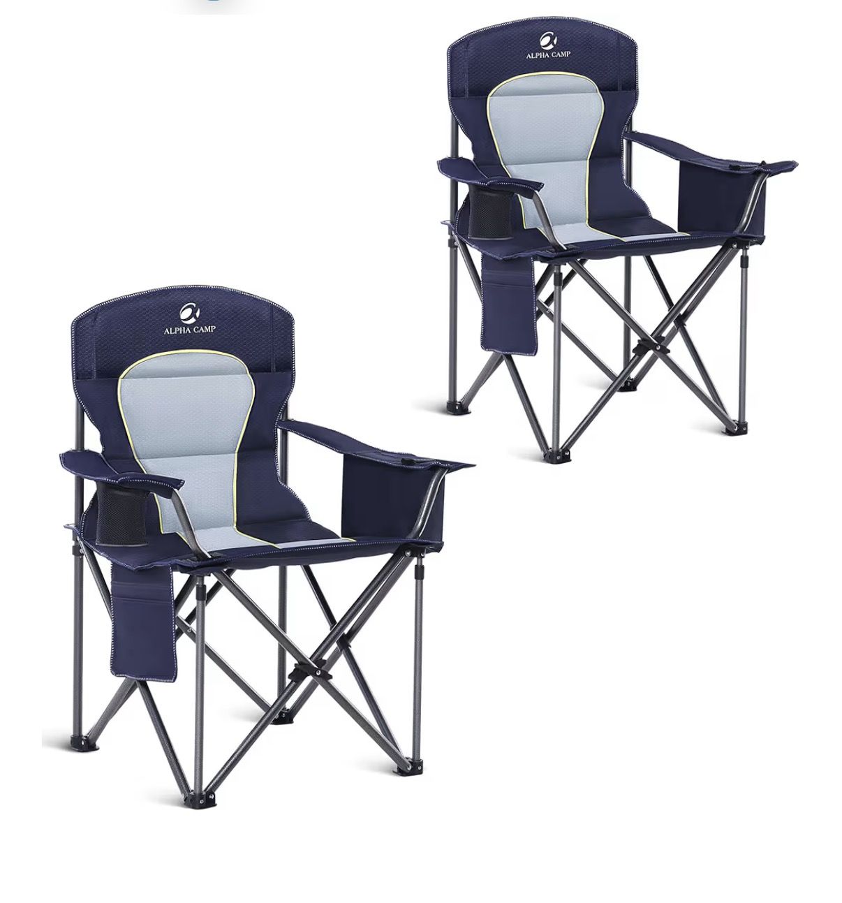 Open Box ALPHA CAMP Heavy Duty Camping Chair 450LBS Capacity, Oversized Folding Chair for Heavy People, Padded Portable Outdoor Chair with Cooler Bag & Cup Holder for Camping, Fishing, Beach