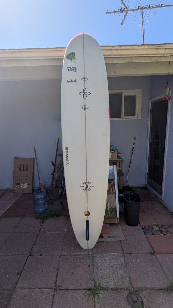 Up for sale is my 9 ft 2 Infinity guava jelly single fin amazing noserider. The dims are in the pictures. You can nose ride and turn this thing so good. very light and really good shape. Comes with the center fin also from fins unlimited. You'll be stoked for the summer coming up won't get a deal like this