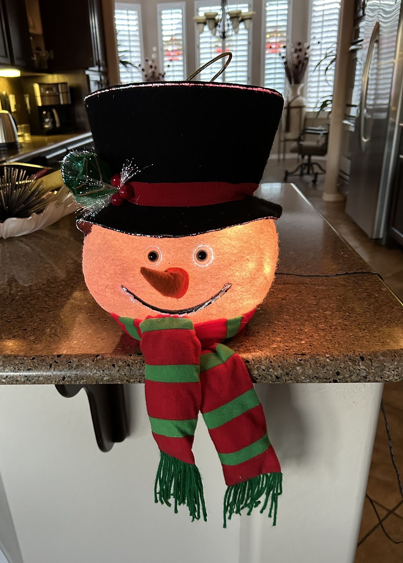 Snowman measures 12” high by 10” wide. No smoking, no pets household.