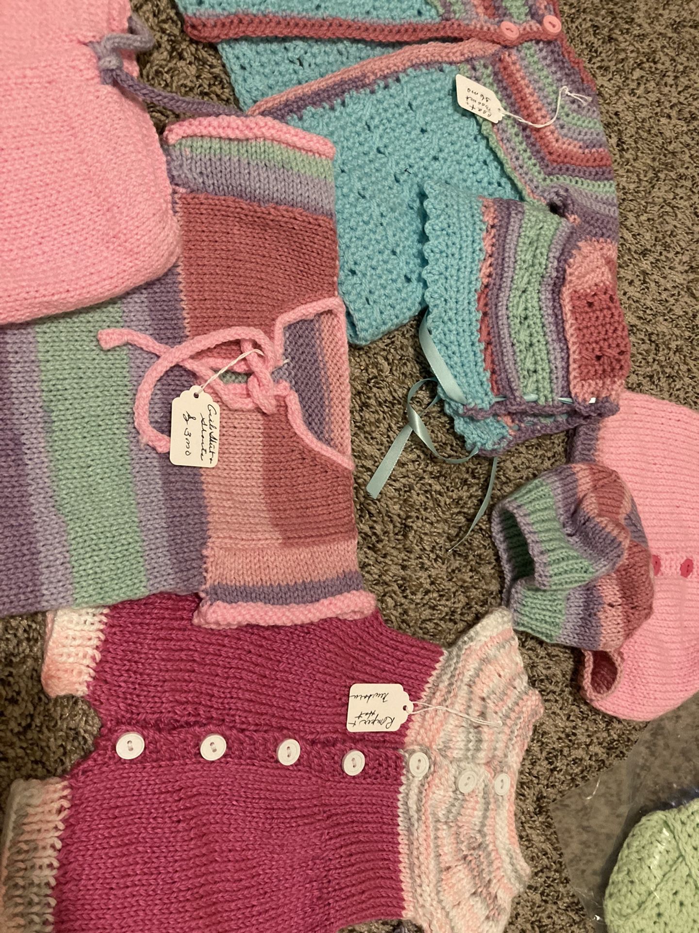 Handmade knitted baby clothes N-6mo $20 for each set Or $100 for all sets