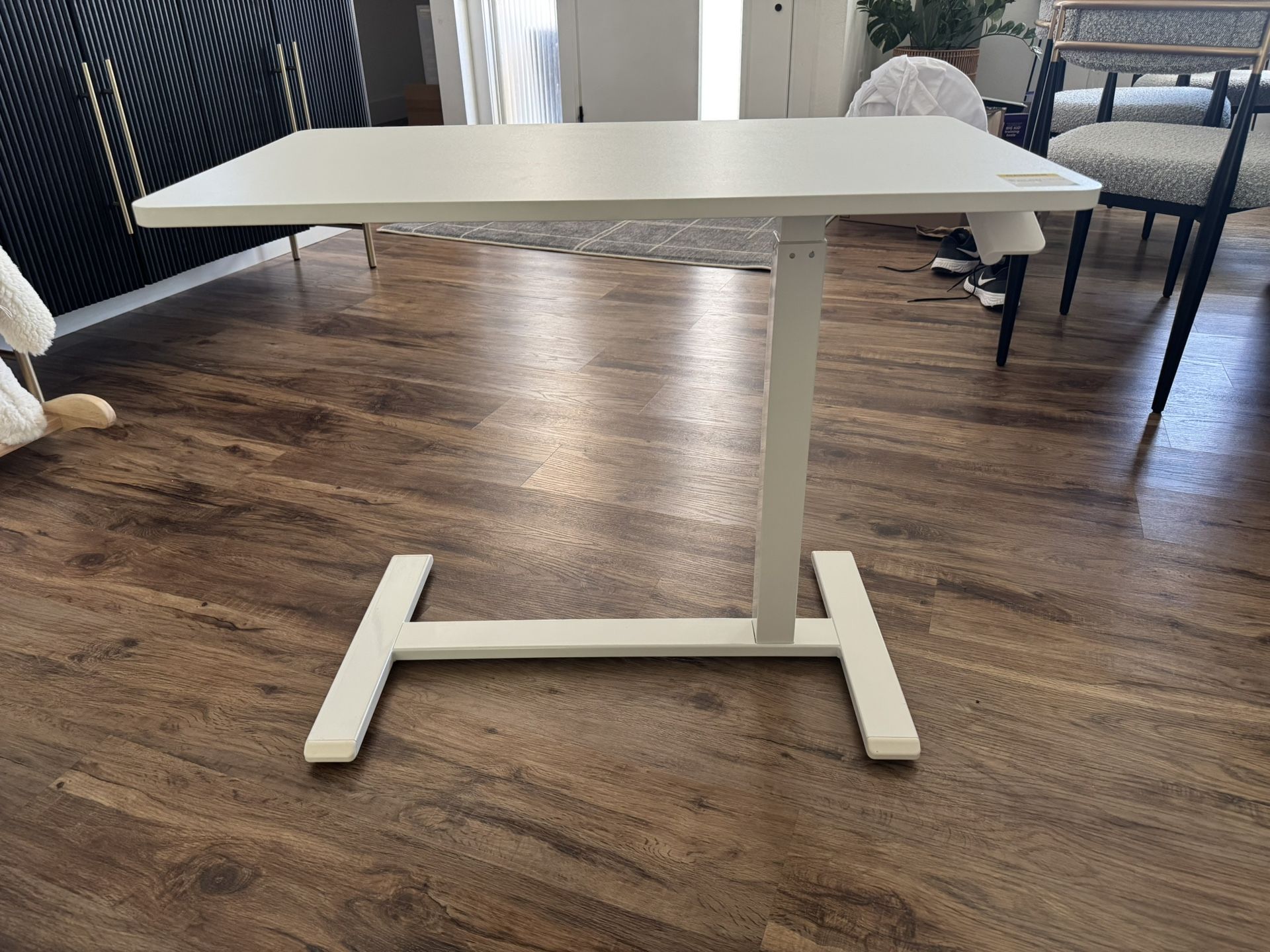 Rolling Desk with adjustable height 32''X18'' White This Overbed Table offers a reliable and convenient desktop surface for anyone to use near furniture like beds, couches and recliners. It features a “C” shaped base that allows for closer access from a chair or a bed. It can also be used as breakfast tray for bedridden patients and elderly (e.g. eating, reading, working) without having to get off their beds. Pick up in Scottsdale, near Chaparral and Granite Reef.