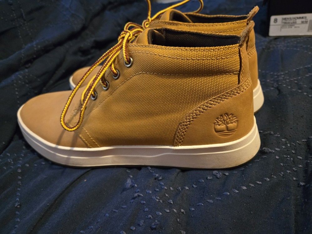 I have some Timberland shoes wore a four times to small hurt my feet so taking up space need gone they are size eight in men.. I do not have the box for them just the shoes i want them to go to someone who needs and wants them.. also im sad to see them go but its time ps. I will not answer any questions I answered all that is known or needs to be answered i would like 80 dollers still brand new..