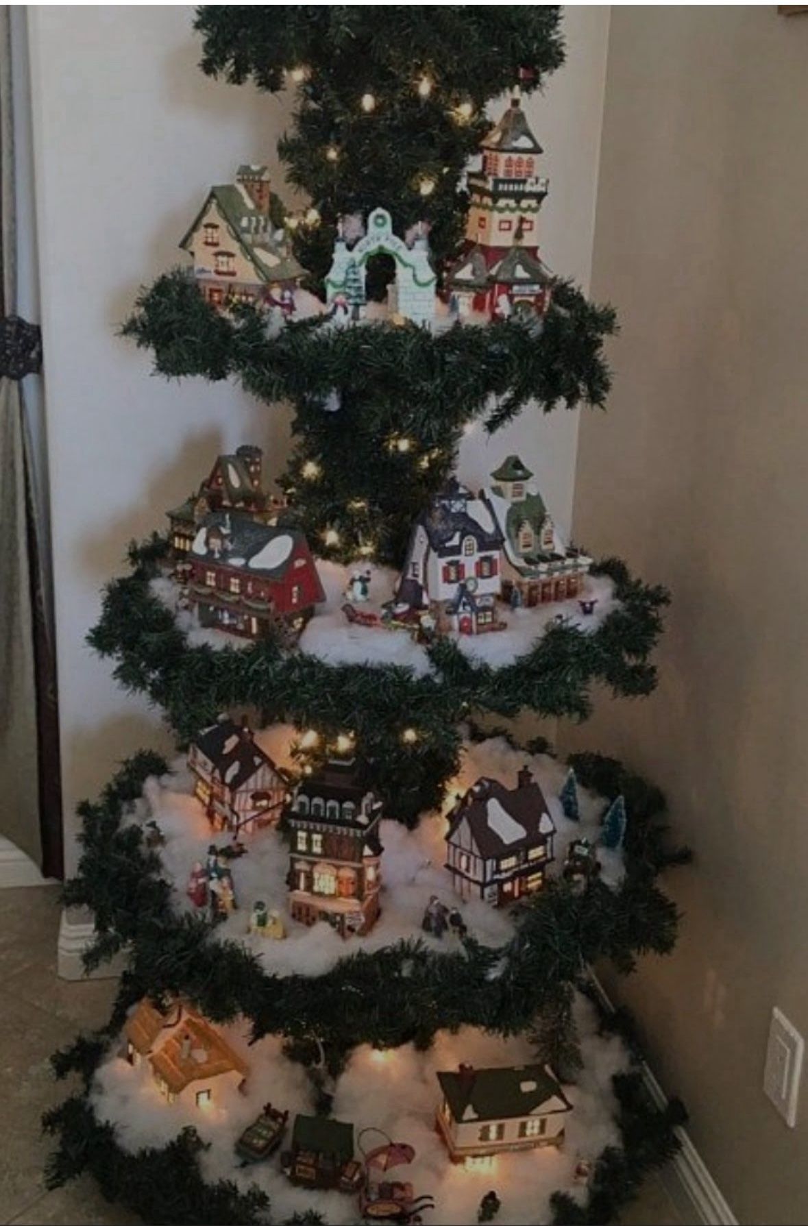 DECORATIONS NOT INCLUDED!!!!! Beautiful and very steady bookshelf or Christmas Village Display. It can be used all year round. It looks beautiful as a bookshelf π It can also be used as a Christmas village display. Halloween display etc..It's 5 feet tall, the biggest circle cincunference is 2.3 feet, and the smallest circle is 7.5 inches. I am asking $100 firm