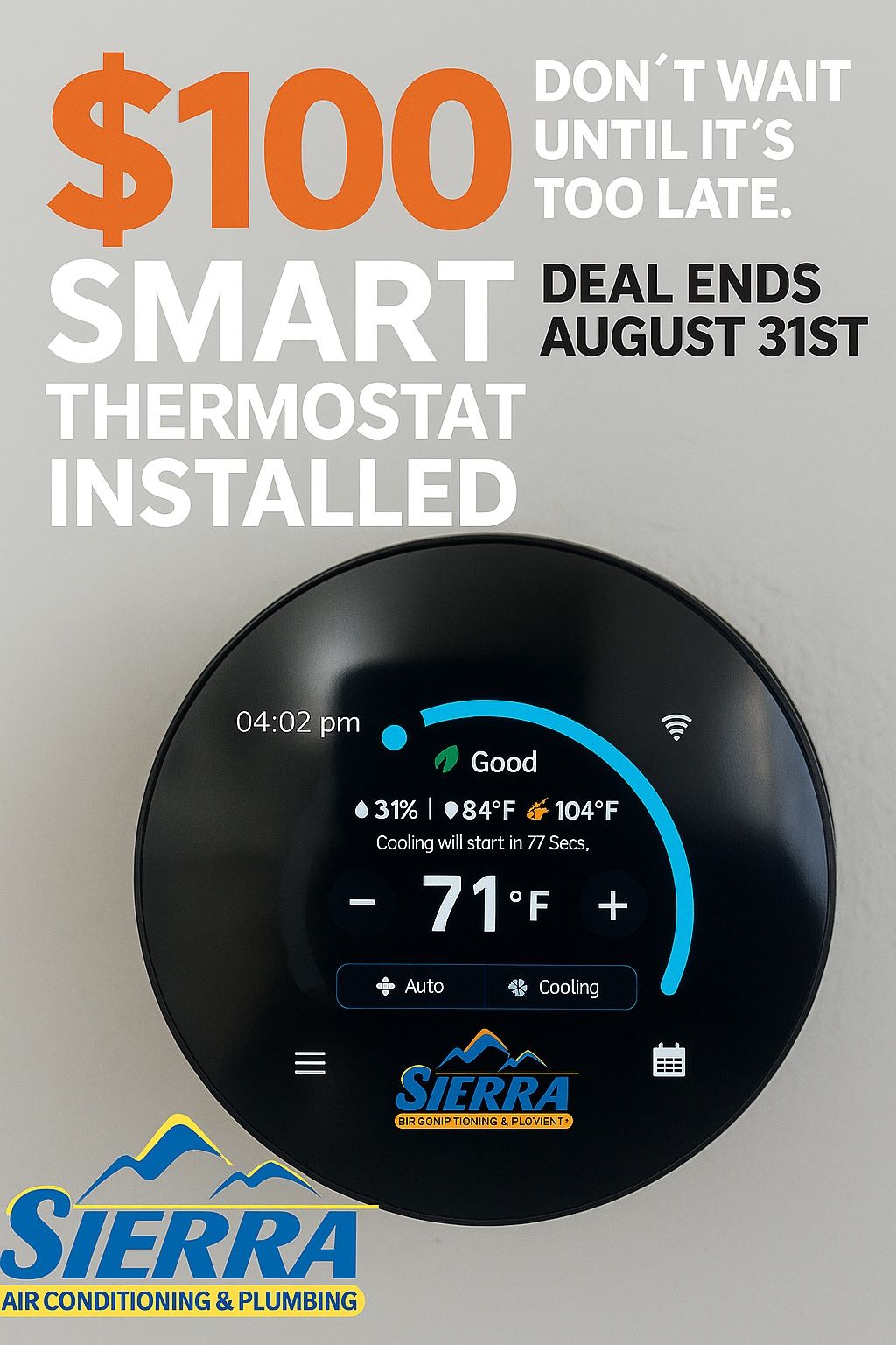 Control your home comfort system in the palm of your hand with a Sierra smart thermostat today! Only $100 installed!