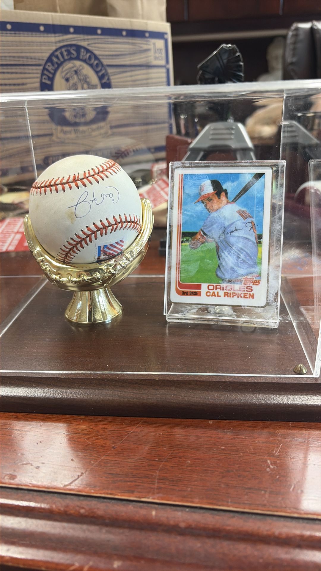 Baseball and cal Ripken rookie card perfect condition