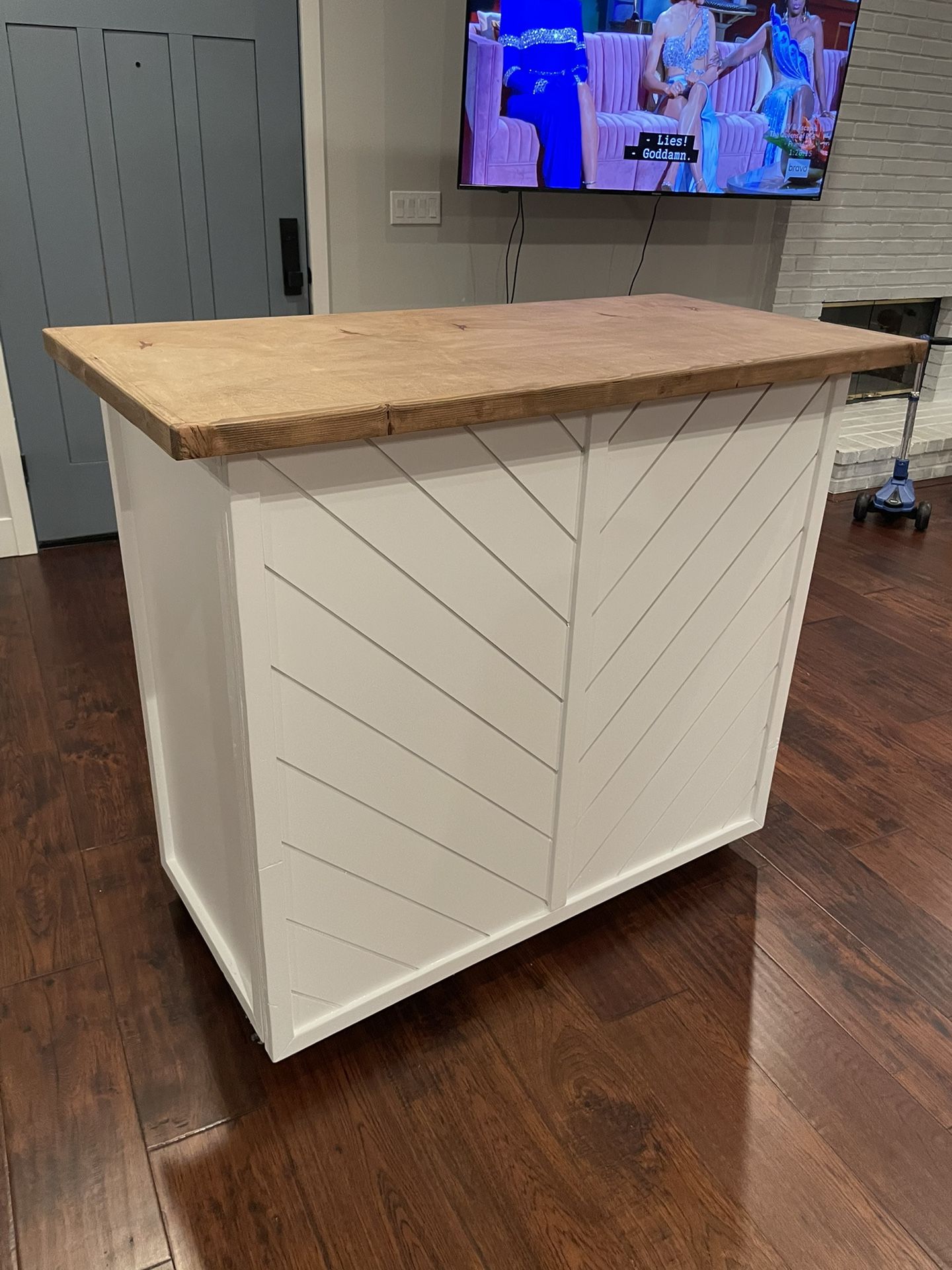 -This item folds into itself for easy storage and is very easy to move and set up for different events -Items are made to order and customizable (Length, width, height, design and color) This items base was 45in x 21in Countertop 48in x 24in