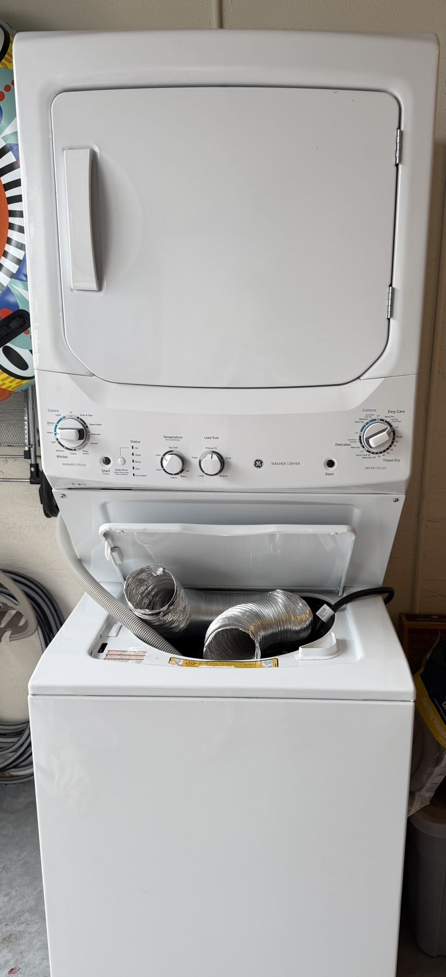 *Great condition-Purchased new mid-2024* The GE Unitized Spacemaker 3.8 Cu. Ft. Washer and 5.9 Cu. Ft. Electric Dryer Model: GUD27ESSMWW Ideal for tight spaces -Stainless steel wash basket -Auto-load sensing feature adjusts water usage -Up-front lint filter is easy to access and clean -Large load capacity -Cleans well -Highly customizable cycles, settings, and water levels -Dryer consistent 3.8 cu. ft. capacity washer and a 5.9 cu. ft. capacity electric dryer