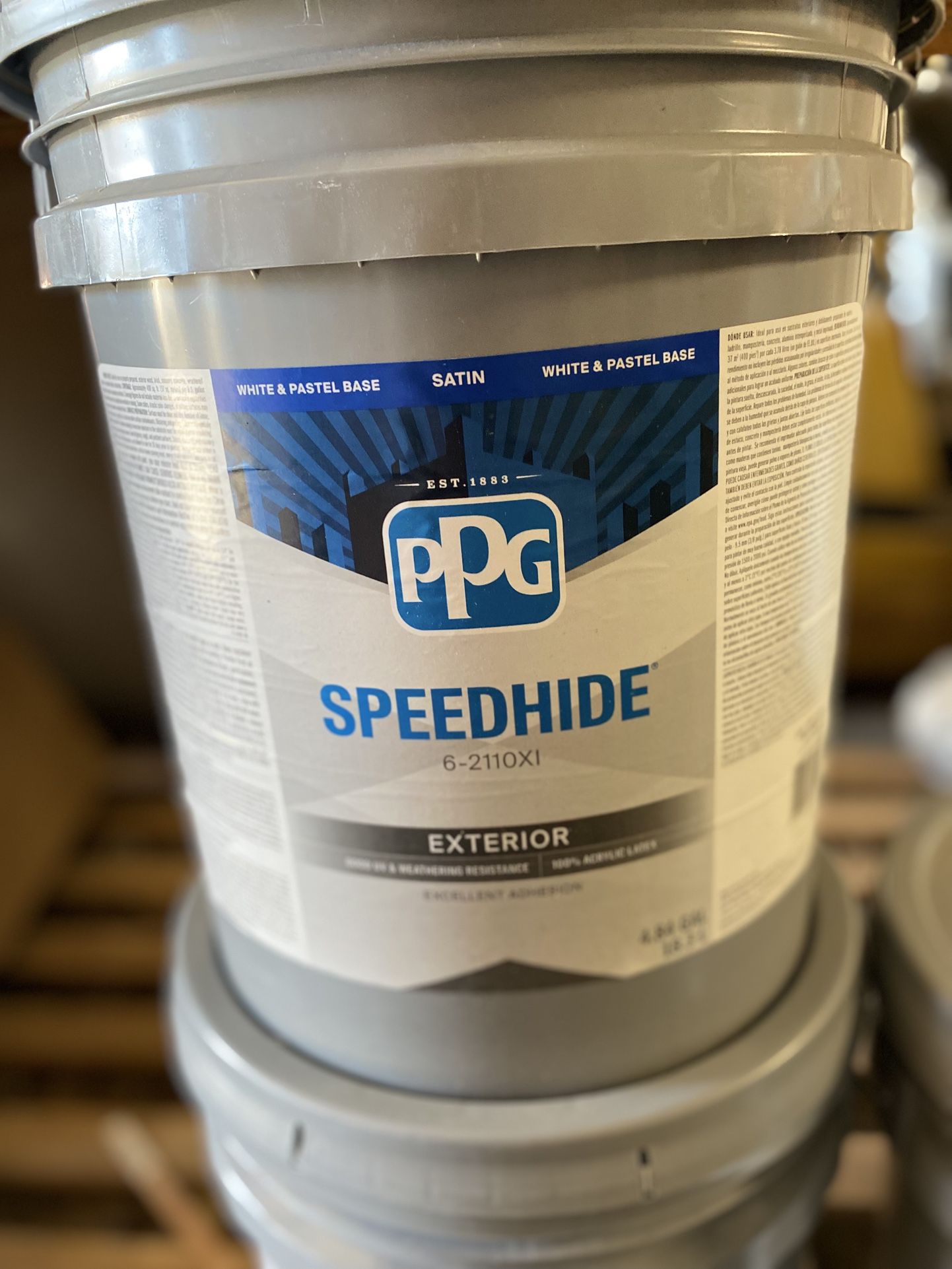 Botes de cinco galones con Pintura EXTERIOR color pastel acabado Satin