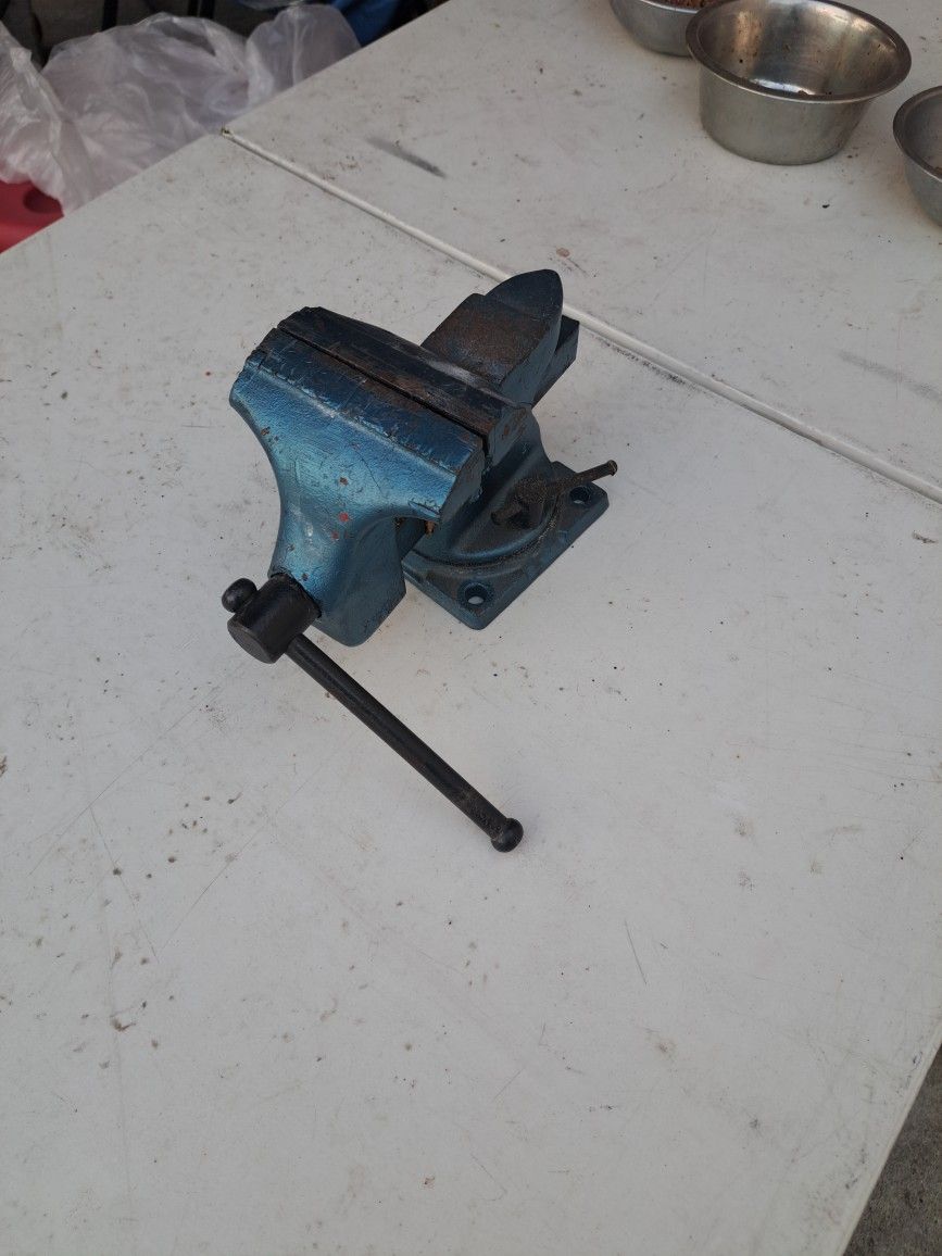 Scout Vise. Small vise but bigger jaw 4". Good vise. All works. The top square for hitting is 2"×2". Total dimensions are 10"L×4 1/2"Wx6"H. $60 OBO. Not sure what year but for sure its vintage.🤑🤑🤑
