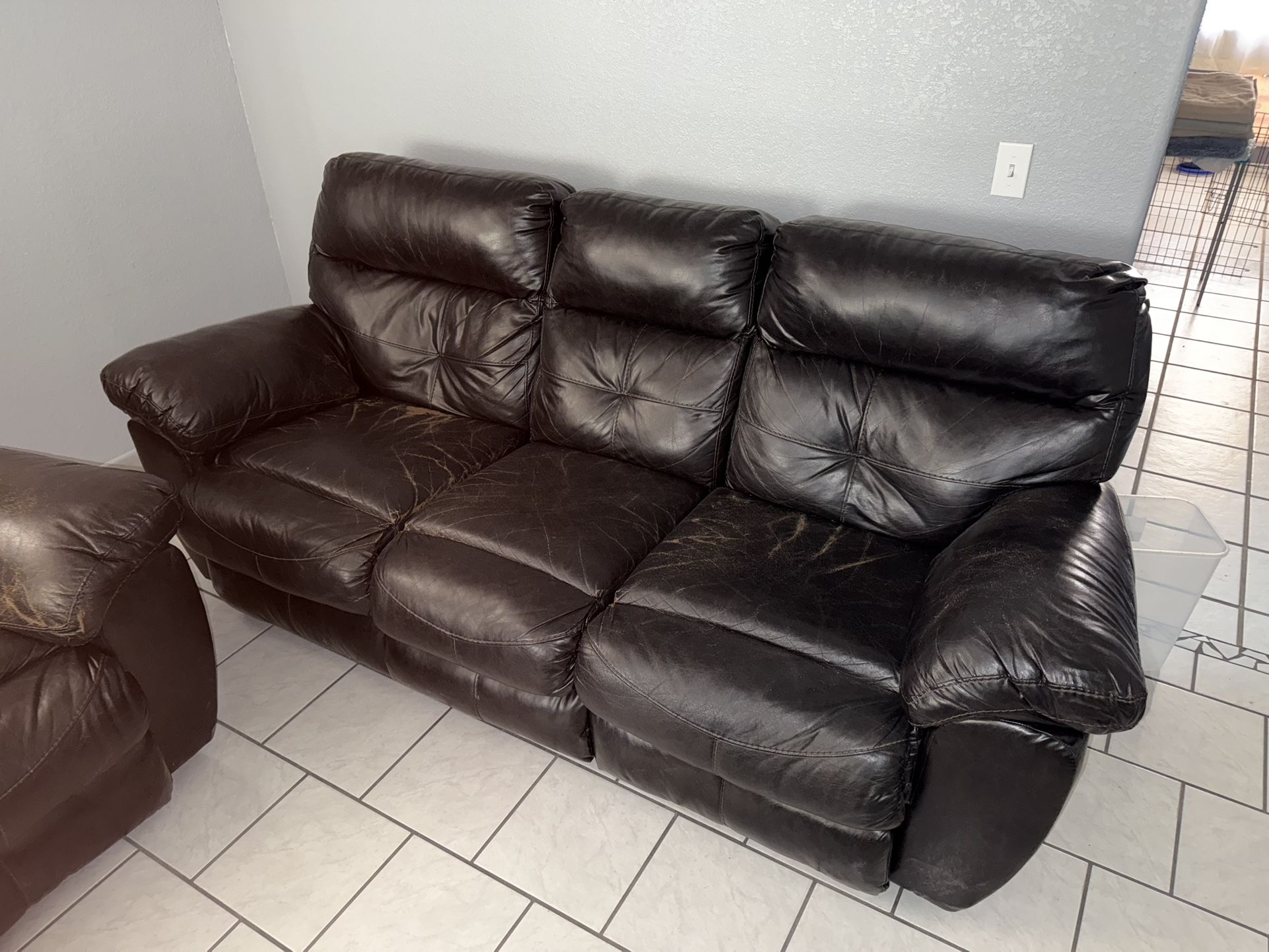 Both have reclining ends, leather, good shape. Does have some wear, which is pictured. Non smoker home. Must pick up