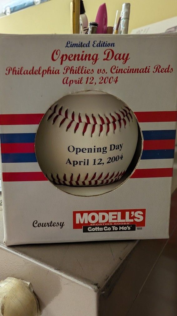 Modell's commemorative Opening Day Baseball. NIB. Phillies vs Reds April 12, 2004.