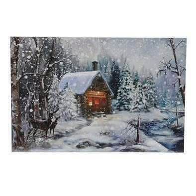 IN BOX! Online price $83. Our price $45. Free gift with purchase. Are you looking for a great artwork to hang in the home during the winter and Christmas season This lovely canvas print is a perfect complement to any room in your home. It depicts a beautiful winter scene in the woods featuring a log cabin and deer outside in the gently falling snow. The log cabin shines with warm lights make the stunning print come to life. This contemporary piece will be enchanting for the bedroom, hall, foyer or entryway. Add warmth to your holidays, and bring a more festive atmosphere. The holiday print is also a great gift for your family and friends. Batteries are required (not included). Luxen Home WHHD1008