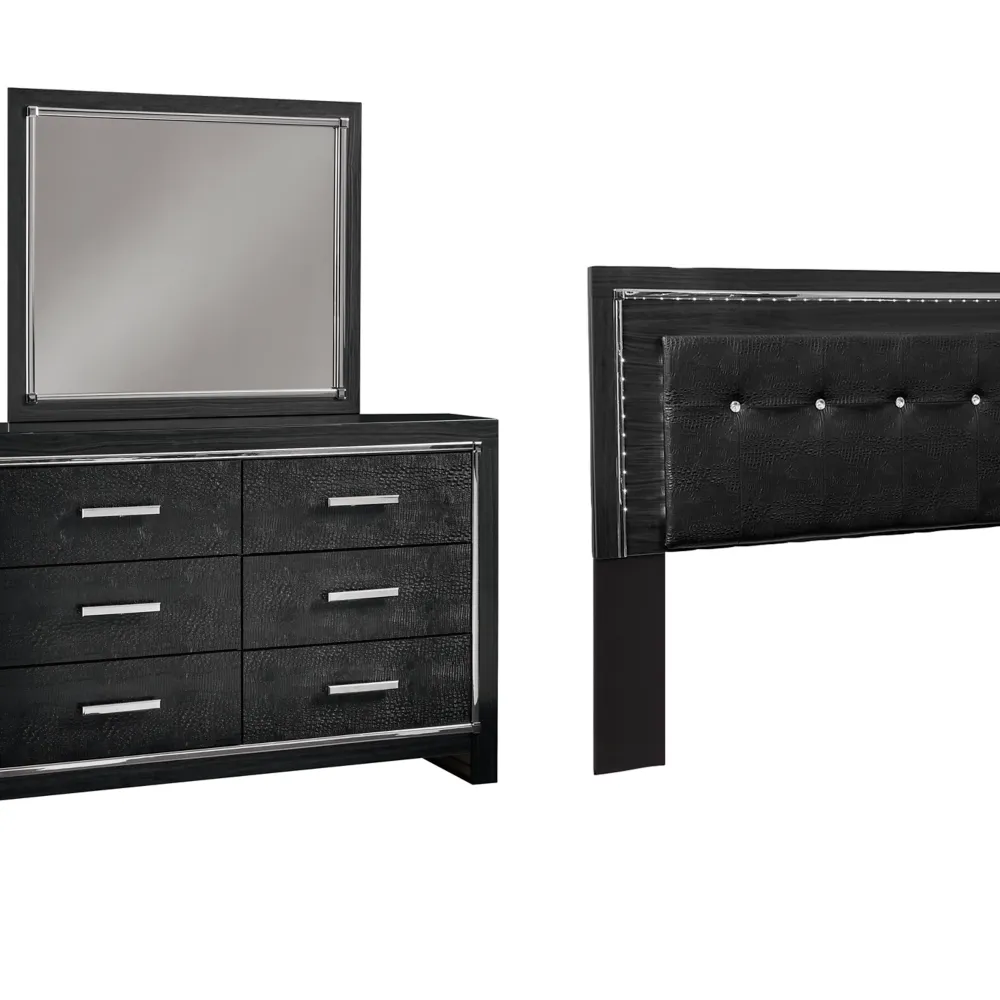 Kaydell Queen/Full Upholstered Panel Headboard Bed with Mirrored Dresser Extensive Inventory Liquidation