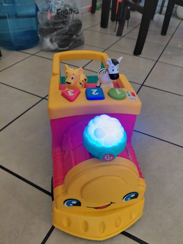 Fisher price toodler train Light up musical Missing 2 animals in great condtion